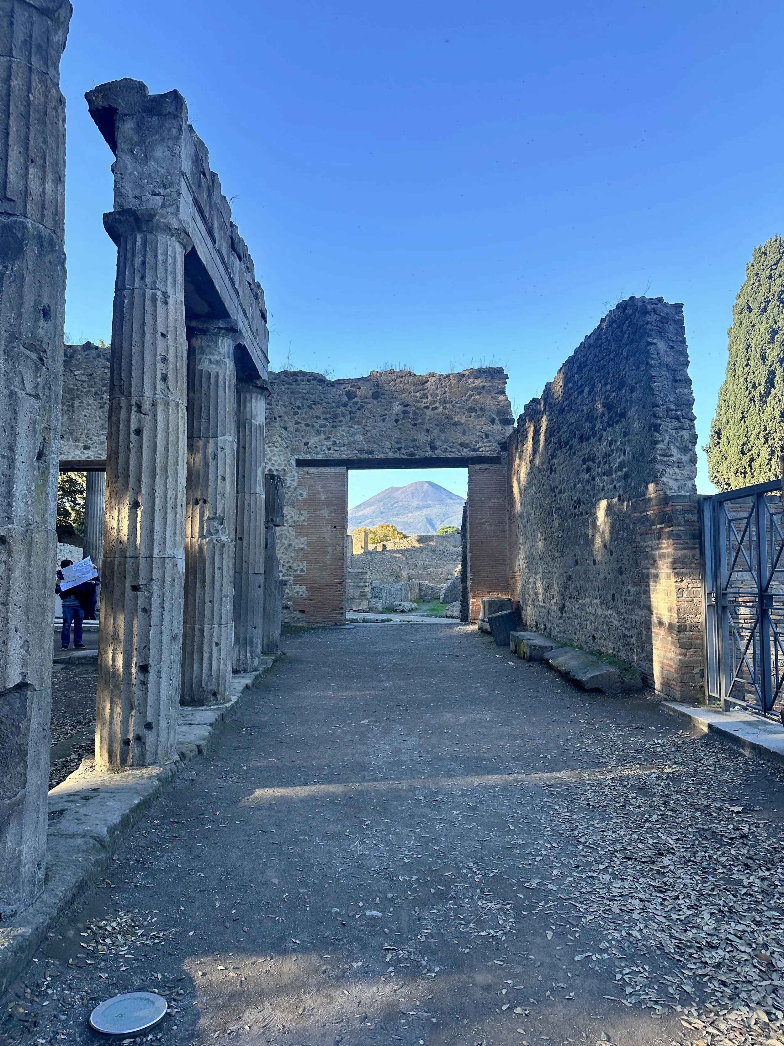 We spent a couple of hours wandering the site, marveling at the preserved villas, frescoes, and even remnants of ancient graffiti. The Forum, with its sweeping views of Mount Vesuvius, was a highlight. While Pompeii’s history speaks for itself, the experience is best with a bit of prior research or a guide to bring it to life. I like to download audio guide apps in advance for this type of place. Typically even one for the group is fine to play out loud or have a person share particularly interesting insights. You can even split an airpod if you want.